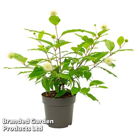 This unusual deciduous shrub is rarely seen in UK gardens. Commonly known as the button bush, Cephalanthus occidentalis bears creamy-white, rounded, button-like flowers from late summer to autumn, with powerful fragrance. The blooms are followed by spherical golden brown fruits that extend its season of interest well into winter. Both the blooms and the fruits are attractive to wildlife, making this a useful addition to wildlife areas. Height: 200cm (78”). Spread: 250cm (98”).