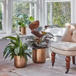 Indoor Kensington Metal Corner Planter Stand In Gold H76Cm W30Cm