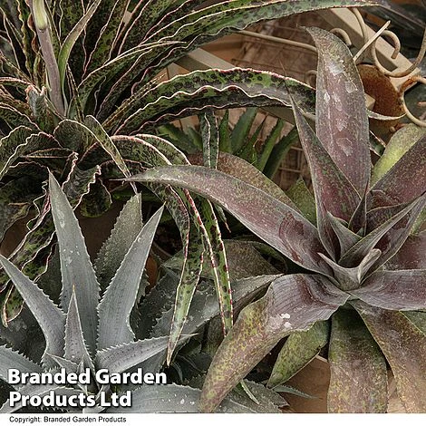 With their awesome colours and bold silhouettes, these Mangaves really strike a pose on the patio! These unusual succulents form fleshy rosettes of evergreen spiky leaves edged with soft spines. Displayed as a collection they make a stylish design statement. Their strong symmetry and glowing colours form dramatic living sculptures which instantly capture attention.