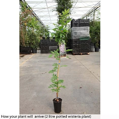 This Japanese Wisteria makes a worthy choice for sunny walls and fences. The fragrant lilac-blue, pea-like flowers are borne in short racemes of around 20cm (8″) long in May and June. During the summer months, the woody, clockwise-twining stems are cloaked in attractive pinnate foliage. Flowering profusely from a young age, Wisteria floribunda ‘Domino’ is reliable and showy, earning it a prestigious RHS AGM. Height: 6m (19’). Spread: 3m (10’). Supplied as a grafted plant.