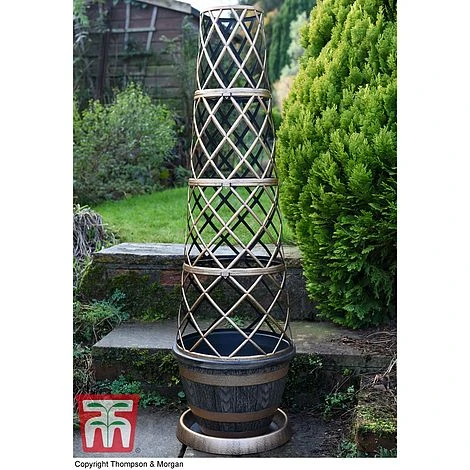 A stylish and classic look for our ingenious Tower Pot system. This wooden barrel effect Tower Pot will fit in to a traditional planting scheme seamlessly. The supportive frame is specially designed to train plants into pillars of colour on your patio. Easy to assemble, the sturdy lattice frame is ideal for all types of climbing plants, including climbing petunias, climbing geraniums and sweet peas. Simply guide the stems on to the Tower Potâ„¢ frame and secure with soft twine. We recommend that you wear gardening gloves when removing old plants from the frame to protect your hands.